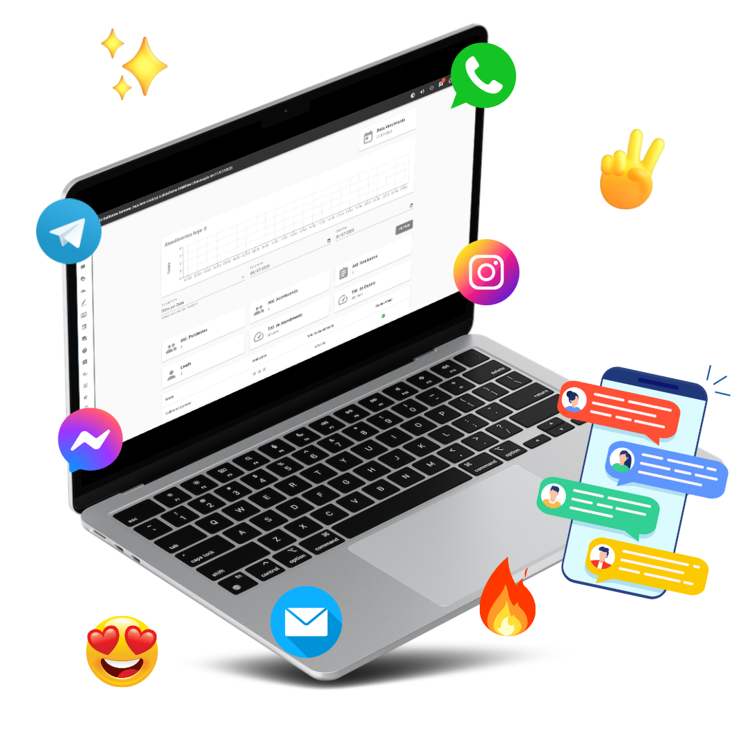 Para empresas que usam o WhatsApp, Instagram, Facebook, Telegram, E-mail e SMS para se comunicar e vender, somos a solução completa.
